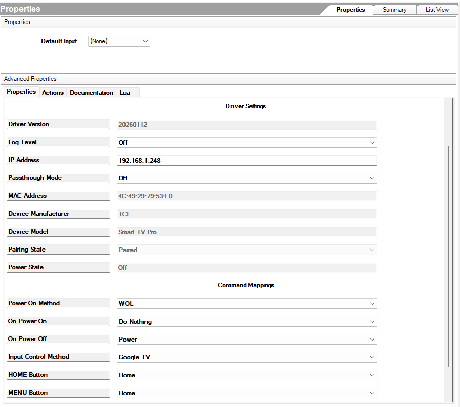 This driver provides IP-based control for a wide range of Google TV and Android TV devices, including but not limited to Chromecast, Google TV streamers, Nvidia Shield, TCL TVs, Hisense TVs, and Philips TVs - essentially any device running Android OS or Google TV OS.