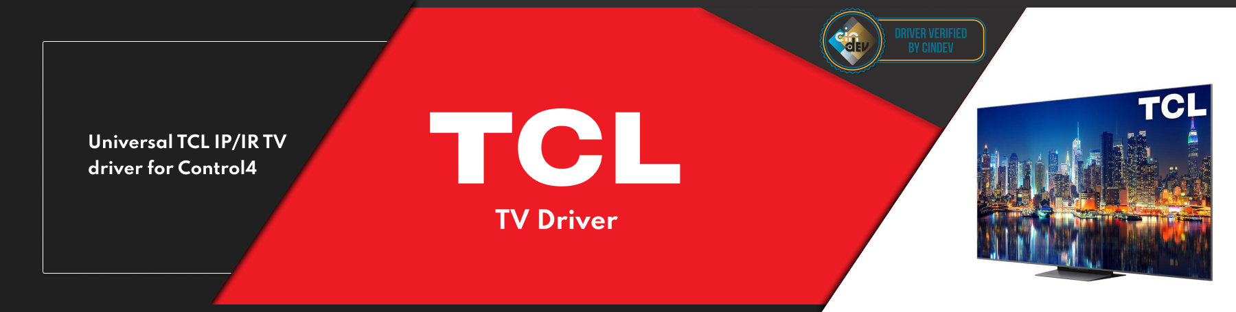 Universal TCL TV driver for Control4 crafted by TCL verified by Cindev. This universal TV driver connects through IP or IR communication to deliver enhanced control inside your Control4 system. Technical support for this driver will be handled by Cindev.