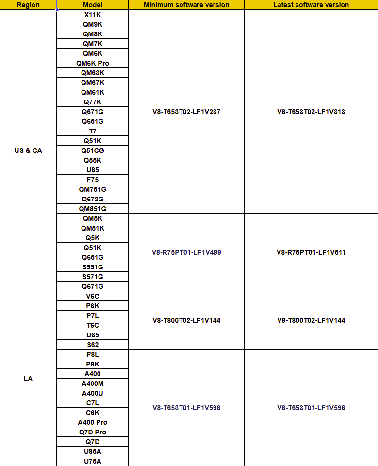 Make sure TV is on the correct software version before installing the TCL TV Driver.