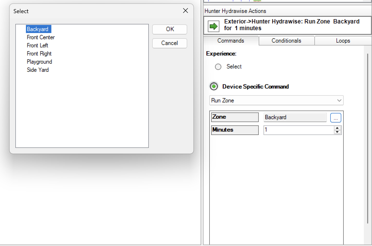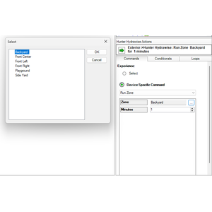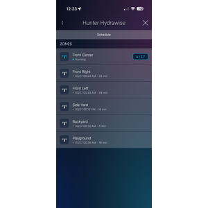 - Experience Button UI - Add the Hunter Hydrawise Experience Button anywhere in Navigator (for example, Comfort) to view upcoming schedules and see which zones are running with time remaining.