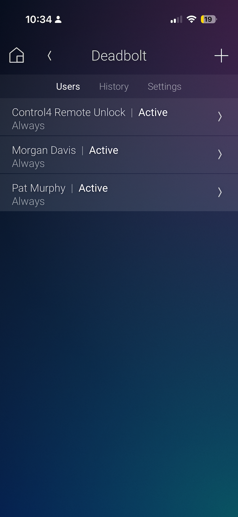 - Automatically lock doors at the end of the day or when arming the security system