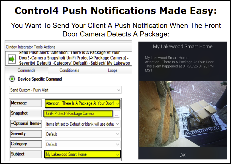 Integrator Tools Agent is a comprehensive solution designed to enhance Control4 notification systems by providing advanced, simplified features for email, push and navigator pop-up notifications. Plus we add the ability to do Text-To-Voice notifications as well which is not something you can do natively in Control4. To top it off we have pre-built notifications that all you need to do is say yes to send them. One click of the button and your notifcations to your clients are done.